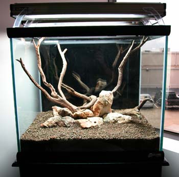 STEP 2:The substrates used for this layout are Volcanit and Terralit as a base substrate both are made by the same company. The aquascaping materials are branchy driftwood and Texas fossil rocks. It�s always good to present the driftwood inside the empty tank to get an idea of the many ways the driftwood could look best.
